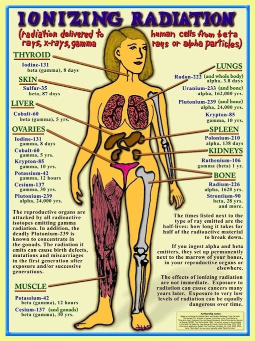 As for the "softer" sciences - biology, ecology .... the worrying thing is that for women, ionising radiation is more harmful than it is for men. A woman's risk of cancer, especially breast cancer is a real hazard. And the risk to a pregnant woman is great, too, for damage to the foetus.