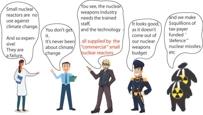 Well, we all do know why. The small nuclear reactor (SMR)power industry - moribund though it is, is essential for the nuclear weapons industry - for a number of reasons, but importantly - to put a sweet gloss on that murderous industry.