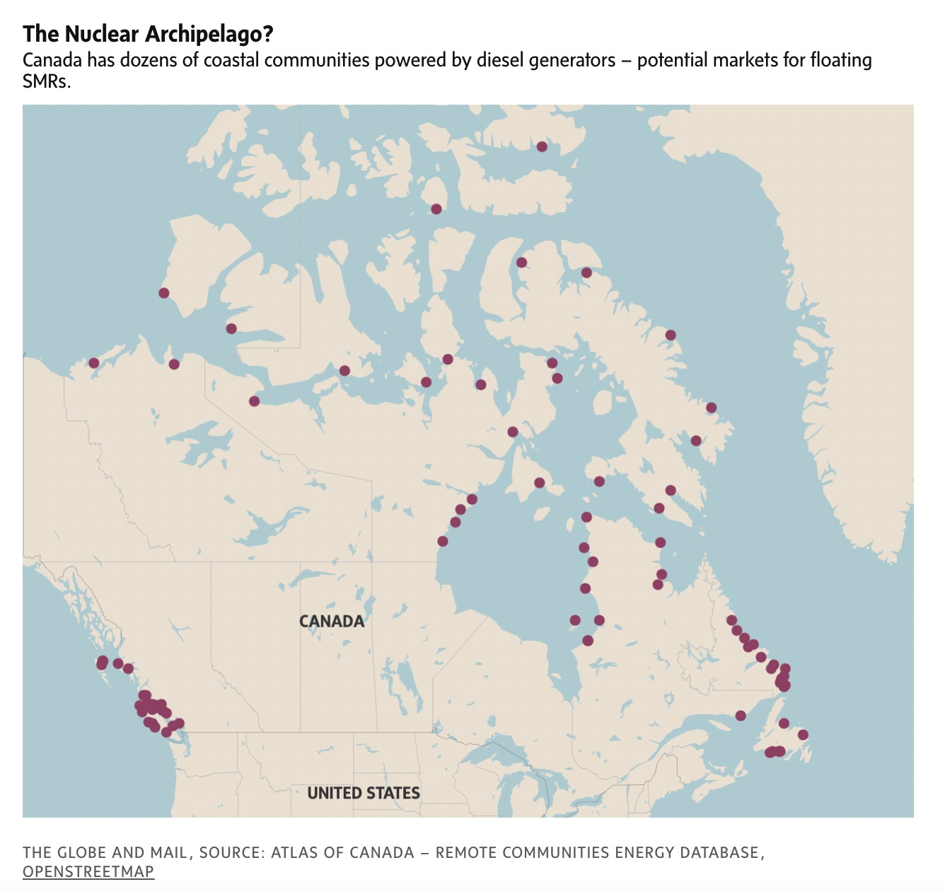 The gimmicks this time are floating nuclear power plants - barges carrying Westinghouse’s eVinci microreactors. These would take over from the current deisal power plants serving remote communities. There are already some solar, wind and battery projects - frowned upon by the nuclear lobby, of course.